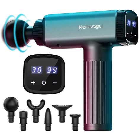 Nanssigy е друг достоен конкурент в този списък с масажни пистолети. Той също използва перкусионна терапия за ефективно облекчаване на мускулните болки и сковаността. Основана през 2018 г., тази млада компания вече си е създала име. Nanssigy се откроява от конкурентите си, тъй като развива общо 30 нива на скорост до 6600 об/мин. Естествено, това е за сметка на времетраенето на батерията, така че ако не търсите супер интензивен масажор, такъв с 3200 об/мин ще Ви свърши добра работа. Точно както повечето масажни пистолети на пазара, Nanssigy разполага и с функция за автоматично изключване. 15 минути употреба и трябва да оставите устройството настрани, за да не навредите на мускулите си.